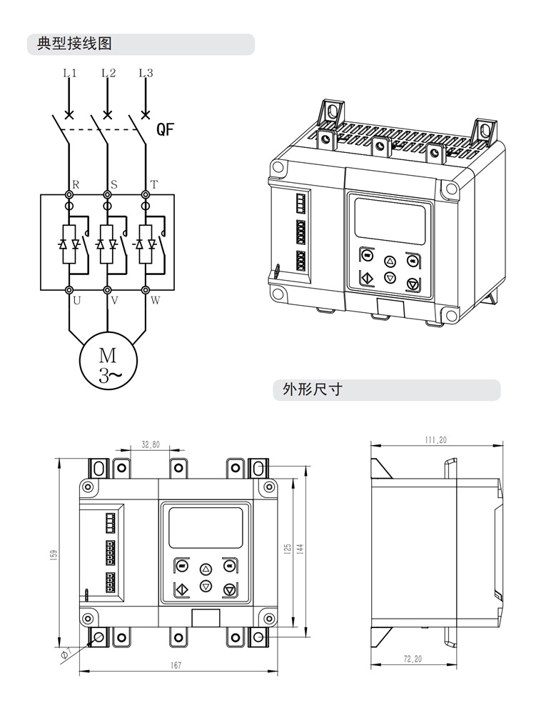9999js金沙老品牌最新推出的SJR3-LB系列内置旁路QM紧凑款替代星三角产品亮相;功率型号为15至37kW。产品采用运行微功耗的内置旁路设计,适应密闭或者无风道环境,产品整体厚度(深度)小于115mm,横置排布布局更贴近星三角替代。